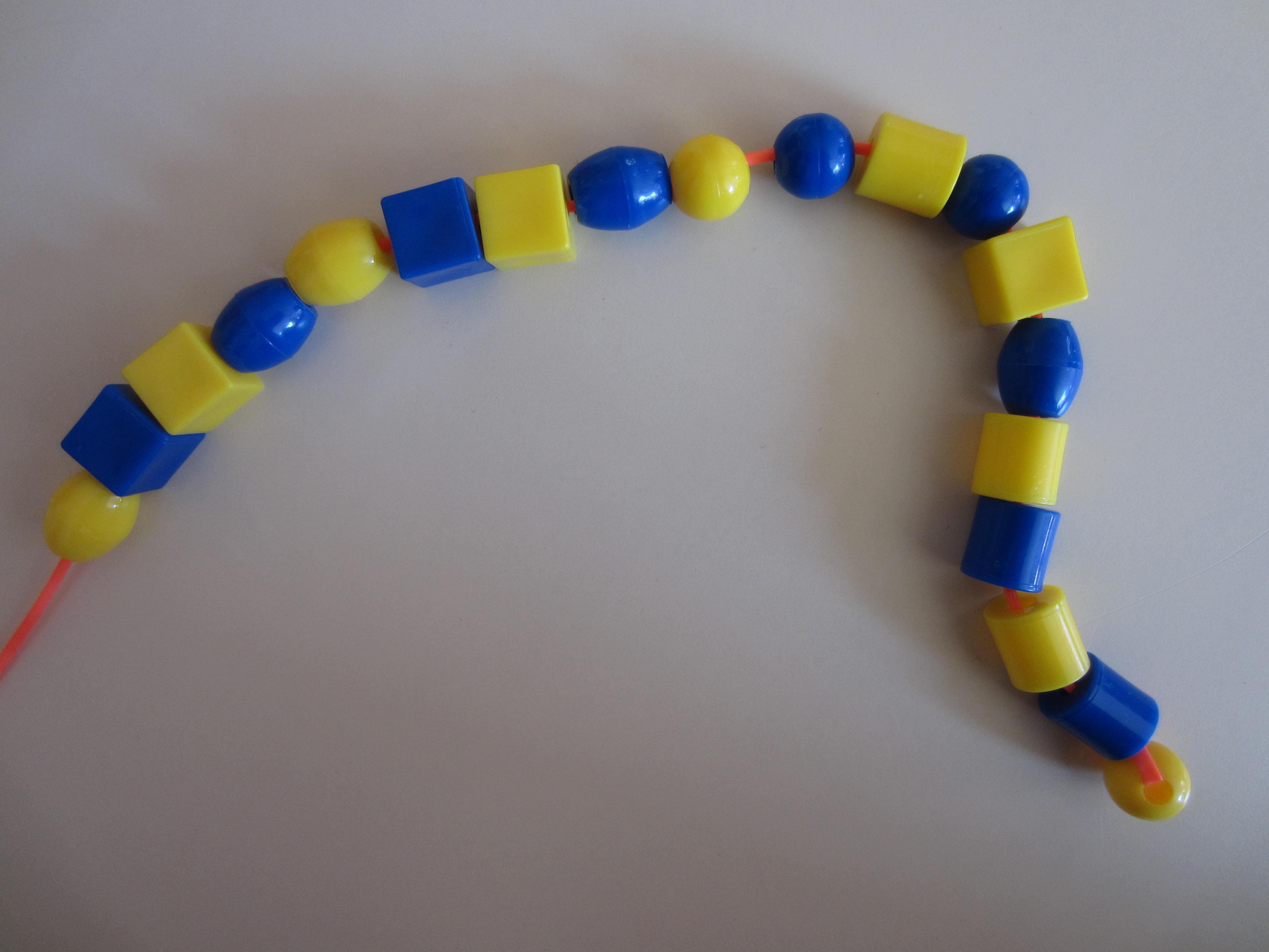 Je regarde le modèle et j'alterne les 2 couleurs du collier.