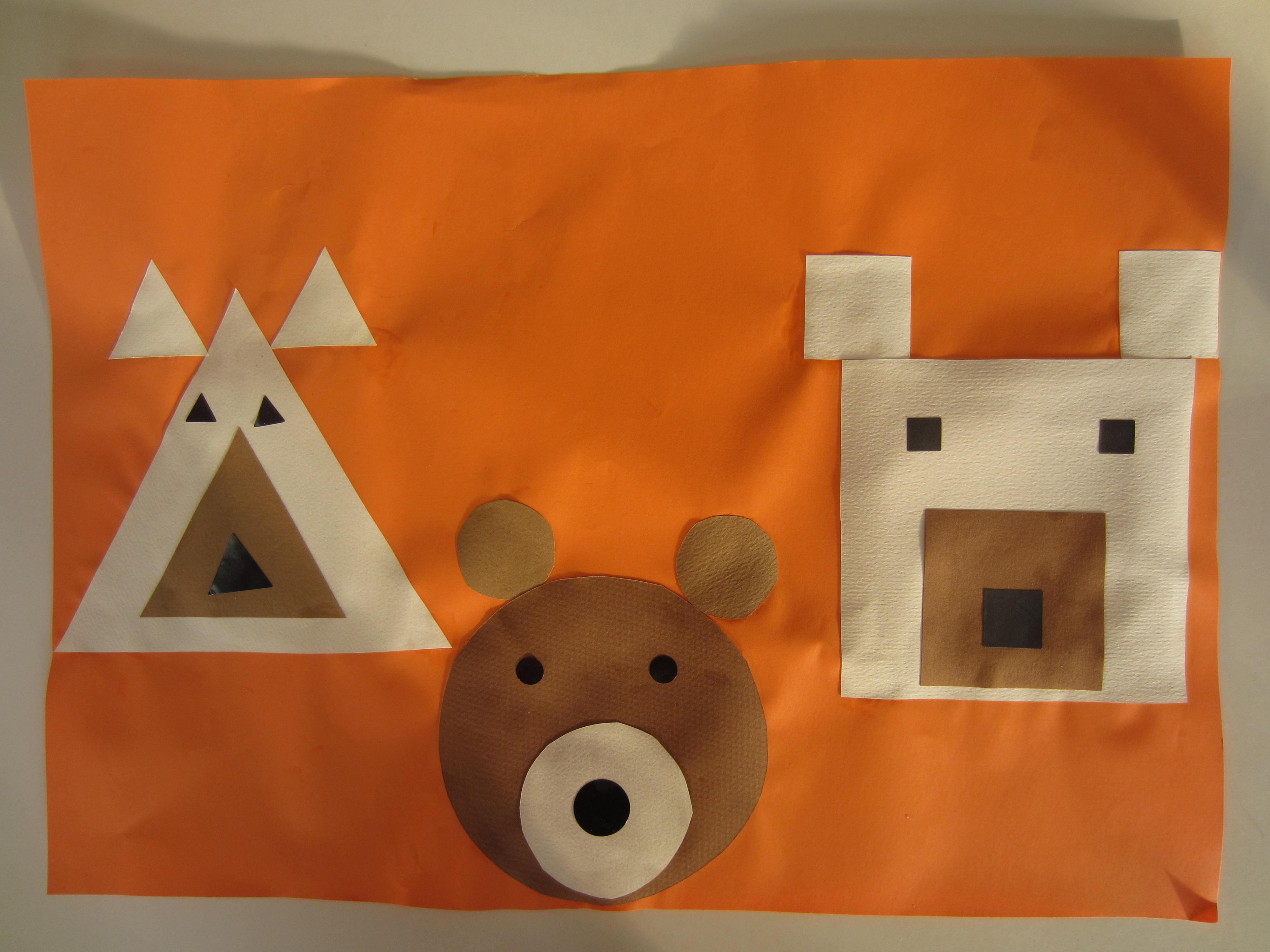 Je tris les formes, je les colle comme le modèle pour réaliser nos ours des formes et je les nomme.